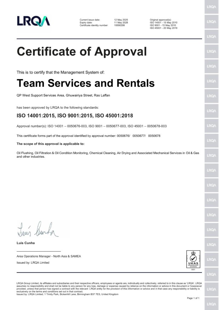 - Continuously review and improve our corporate policy, integrated management system, QHSE objectives and targets to ensure suitability and revise as required in consultation and participation of workers and interested parties.
